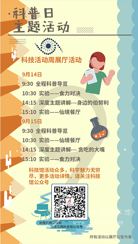 | “科普日”主题活动 | 9月14日、9月15日 |