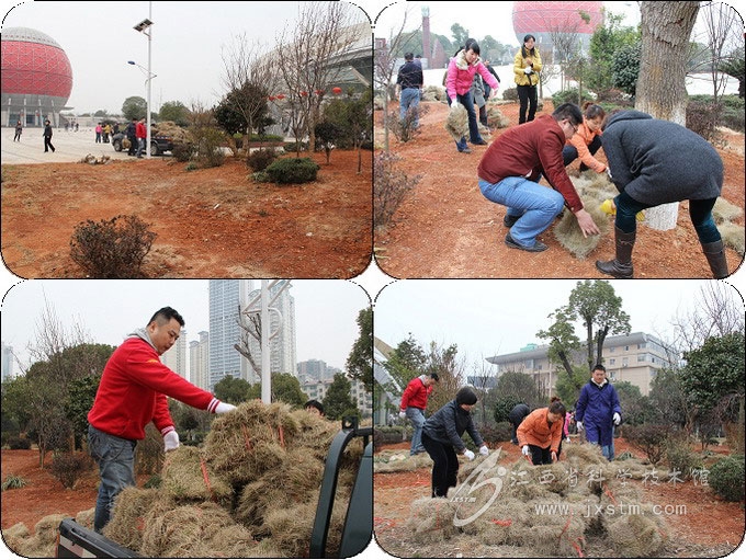 3月14日下午13时,我馆团员青年响应团支部的号召,积极参与为我馆主绿化带铺设草皮的劳动。